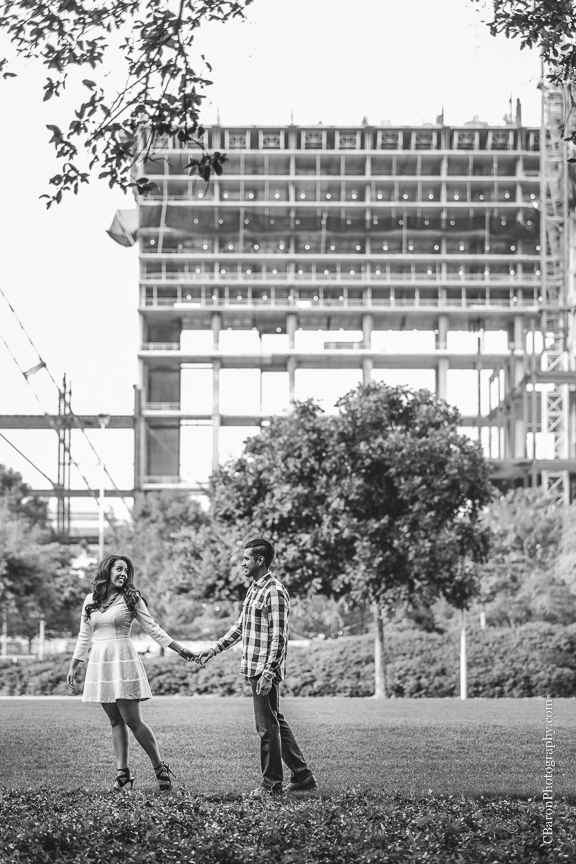 As a kid, my mom use to tell me stories about visiting my Aunt out in West Texas. It was a tiny little town and everyone knew everybody. It sounded so charming and sweet! While I think it would be fun living in a town where everyone knows your name, I would hate to miss out on the opportunity to be introduced to the multitude of new people and experiences that a major city has to offer. The great thing about Houston is there is so much diversity – culture, food, people – I could go on forever. The City of Houston itself, is so diverse! Melanie and Chris’ engagement session proves this point. All of their photos were taken downtown, but they appear to be taken in different places. Some of the photos even have a little bit of a rural feel. Not that the cityscape mattered much because these two were glowing. They are such a loving couple! Melanie is absolutely beautiful! It was impossible to get a bad shot of her. What a lucky man Chris is! We can’t wait for their wedding this fall!