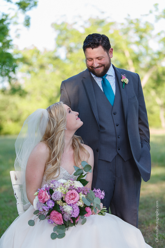 Haylie and Drew married at Chandelier Grove in Tomball,Texas. It was the perfect venue for their vintage and whimsical wedding. Haylie incorporated the perfect hues of purple, magenta, mint and teal. The entire wedding was so bright and cheerful. Perfect for such happy day! It was almost as if we had stepped into the pages of Alice In Wonderland. I could discuss the details for hours because there were so many and they were absolutely incredible. Much to my delight, there was definitely a literary theme. There were vintage books everywhere and the tables were named after well-known novels which later aided the guests in finding their seating arrangements with library cards. The barn, as well as the altar, was adorned with the most adorable paper flowers. So perfect for their wedding!