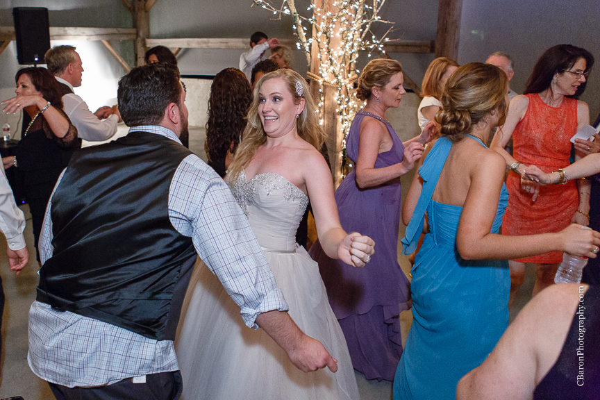 Haylie’s dress was incredible. It was so ethereal and she truly had that bridal “glow.” Her bouquet was absolutely beautiful and fit the otherworldly feel their wedding had. Haylie and Drew shared a sweet and intimate first look, which was followed by a lot of playfulness and laughter. They even shared some quality time with their bridal party. After the ceremony, their guests enjoyed dinner off of the gorgeous mismatched china inside the barn with signature beverages from Haylie and Drew. The remainder of the night was filled with joy and their guests danced under the twinkling lights inside the barn. So romantic!