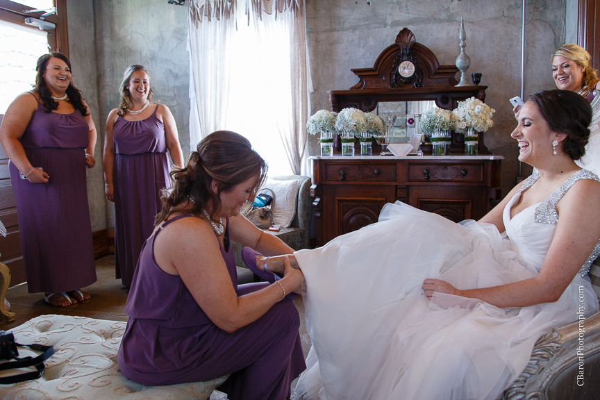 Jessica and Aaron’s wedding was at Olde Dobbin Station in Montgomery, Texas. I love the barn at Olde Dobbin Station! So elegant and charming. It was perfect for their rustic wedding! Jessica’s bridesmaids weren’t the only ladies wearing a gorgeous gown. Did you see Jessica’s dress?? It is stunning! I’m not sure which aspect of it I am in love with the most. The beading, the back, the way it flows… I just can’t decide. One aspect I can decide on though, is her nails! Oh my gosh. I am absolutely in love with her nails. Initially, I loved the shade of lavender and thought to myself that I want need to find that color for my own nails. Then I saw the precious little hearts that adorned her ring fingers and I was a head over heels! So cute! The boys also looked quite dapper in their suspender, bow ties…and Converse! Lucky guys for getting to wear such stylish and comfortable shoes! The color and fabric of their bow ties was the perfect vintage addition to their wedding day apparel!