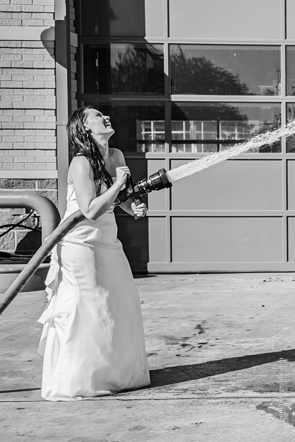 Society hears bits and pieces of the brotherhood/sisterhood surrounding certain First Responder professions. I am talking about Fire, Police, EMS and the sort. You often hear these heroes refer to this brotherhood as family, which is an extremely accurate description of this inseparable bond. Our lovely Bride, Andrea, married into the red family. When she decided to do a Trash the Dress session (or in this case, Drown the Gown), she couldn’t think of a more appropriate location than her new hubby’s fire station!