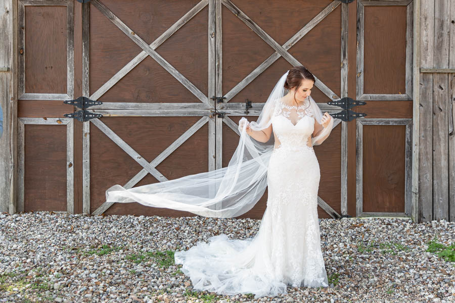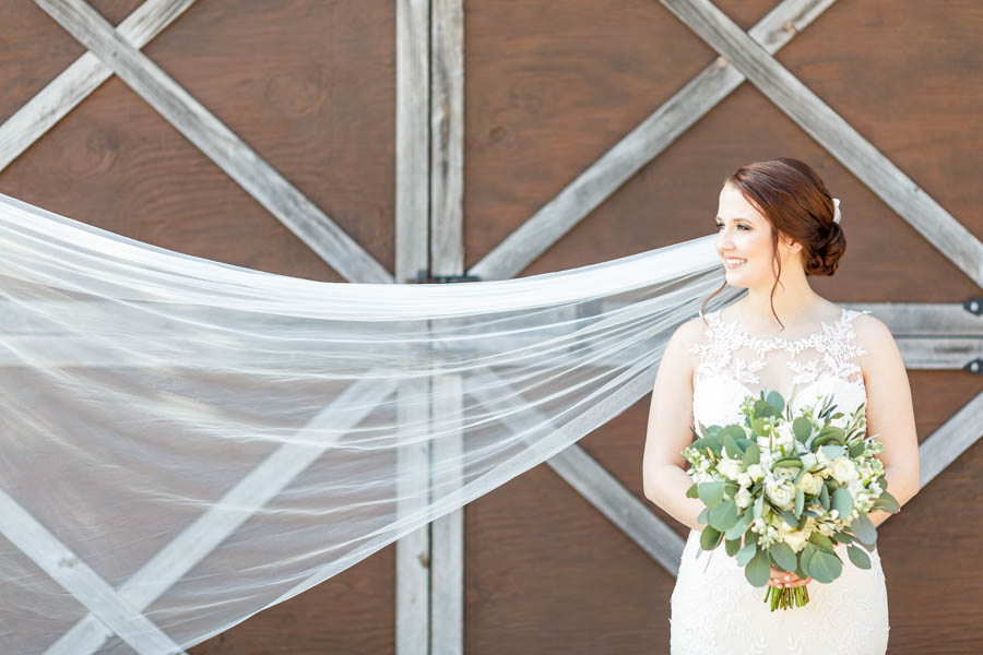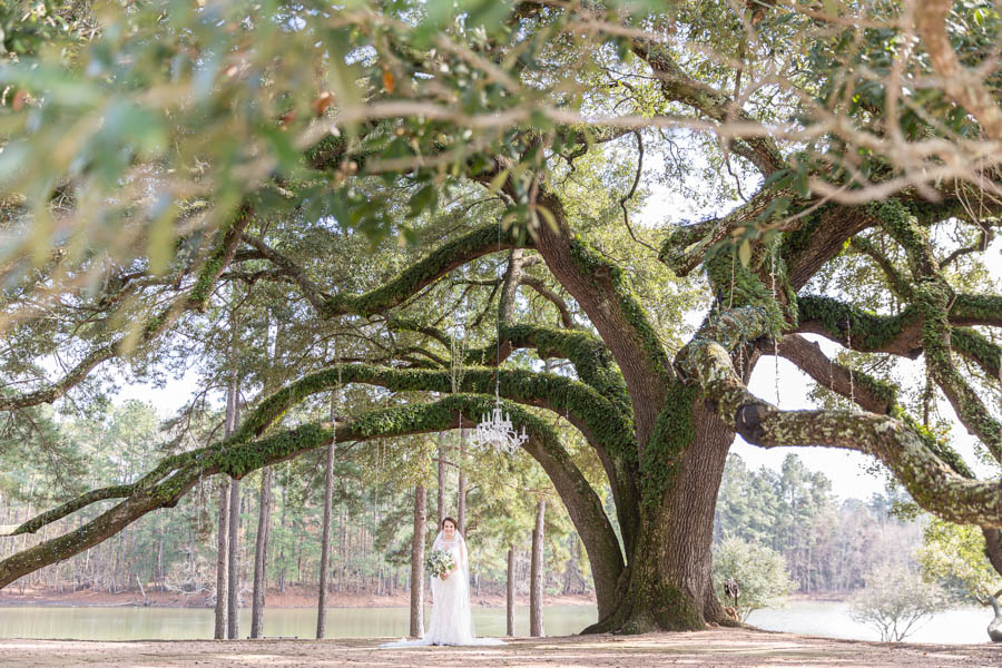 Stunning bride wearing a Lillian West bohemian bridal gown collection from Justin Alexander. Her cathedral length veil made for amazing imagery at her venue Pine Lake Ranch. We cannot wait for Megan & Dylan to say “I do” underneath this breathtaking century old Oak Tree!
