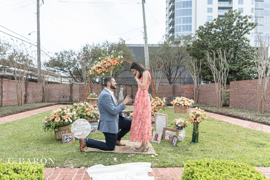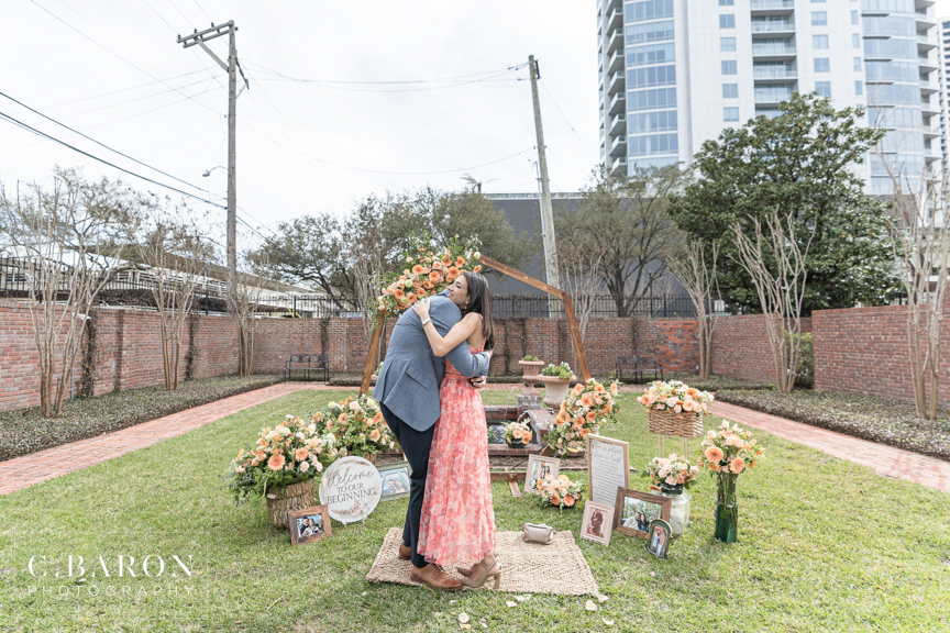 Michael completely surprised Irene with a such a beautiful display of their relationship at the proposal. He had photos of their entire relationship, a beautiful flower arch and petals all waiting for the surprise proposal. Congratulations to the beautiful couple!
