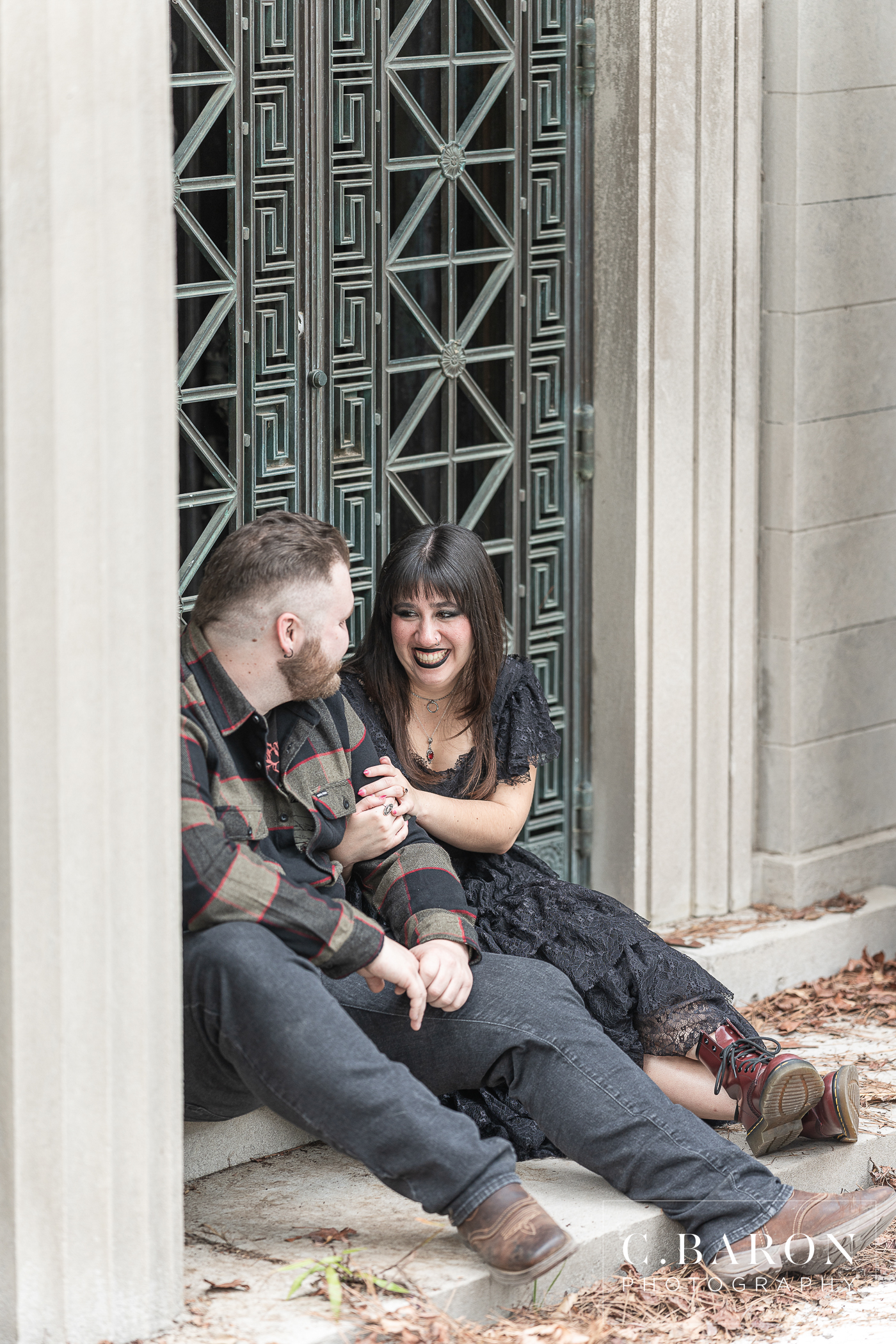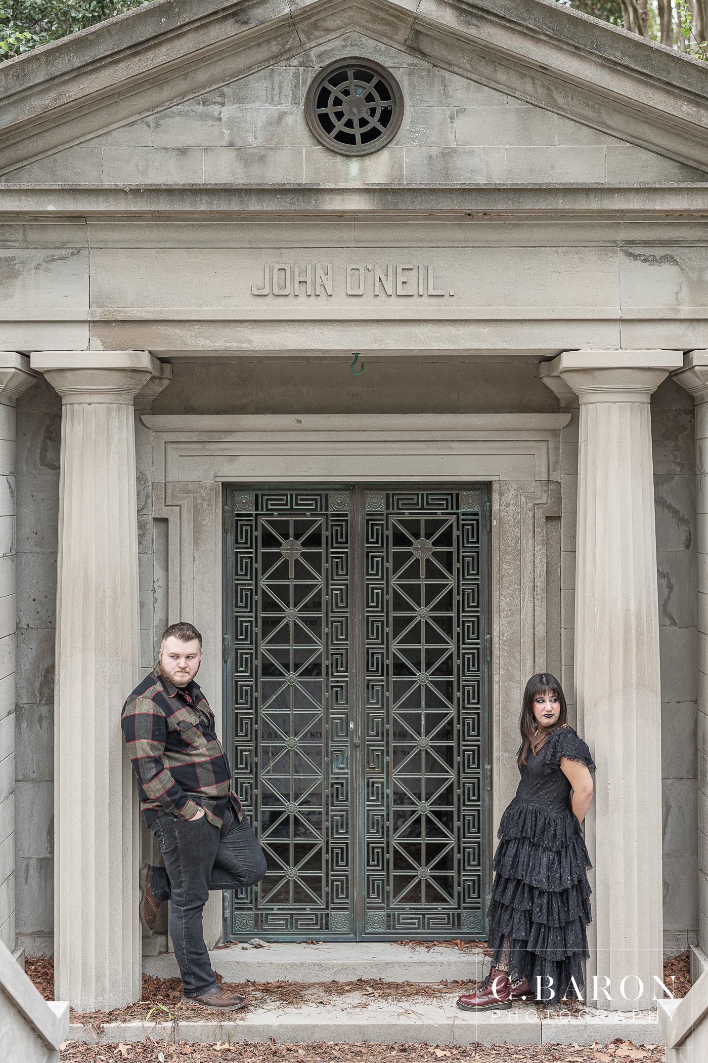 Alexandra and Emerson will be wed on All Hallows Eve so what better way to celebrate their Halloween wedding than with a gothic-style engagement session?! We had a blast roaming the cemetery with these two love birds.