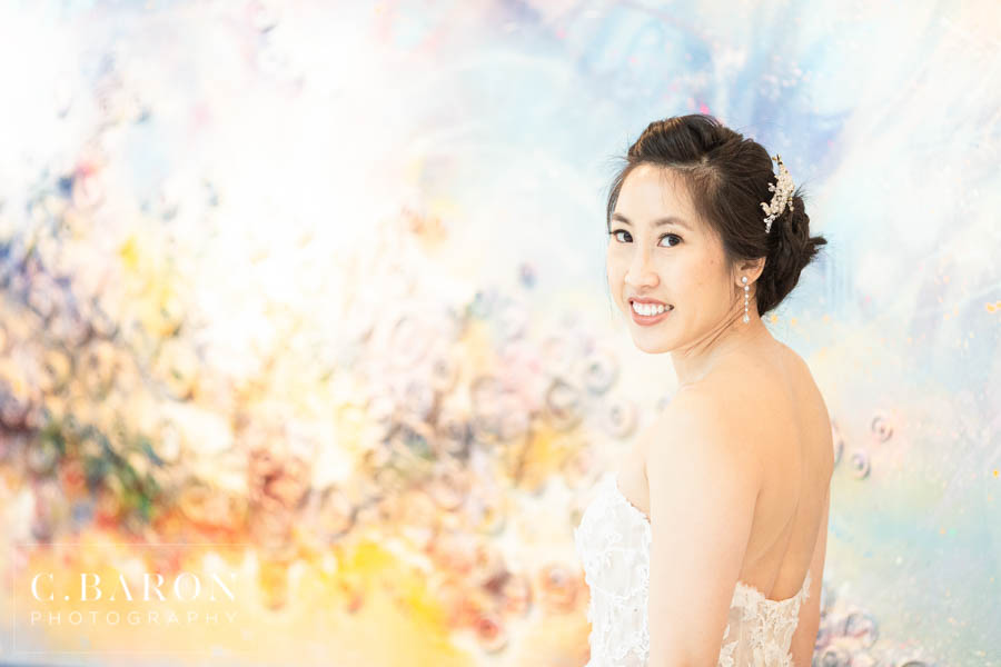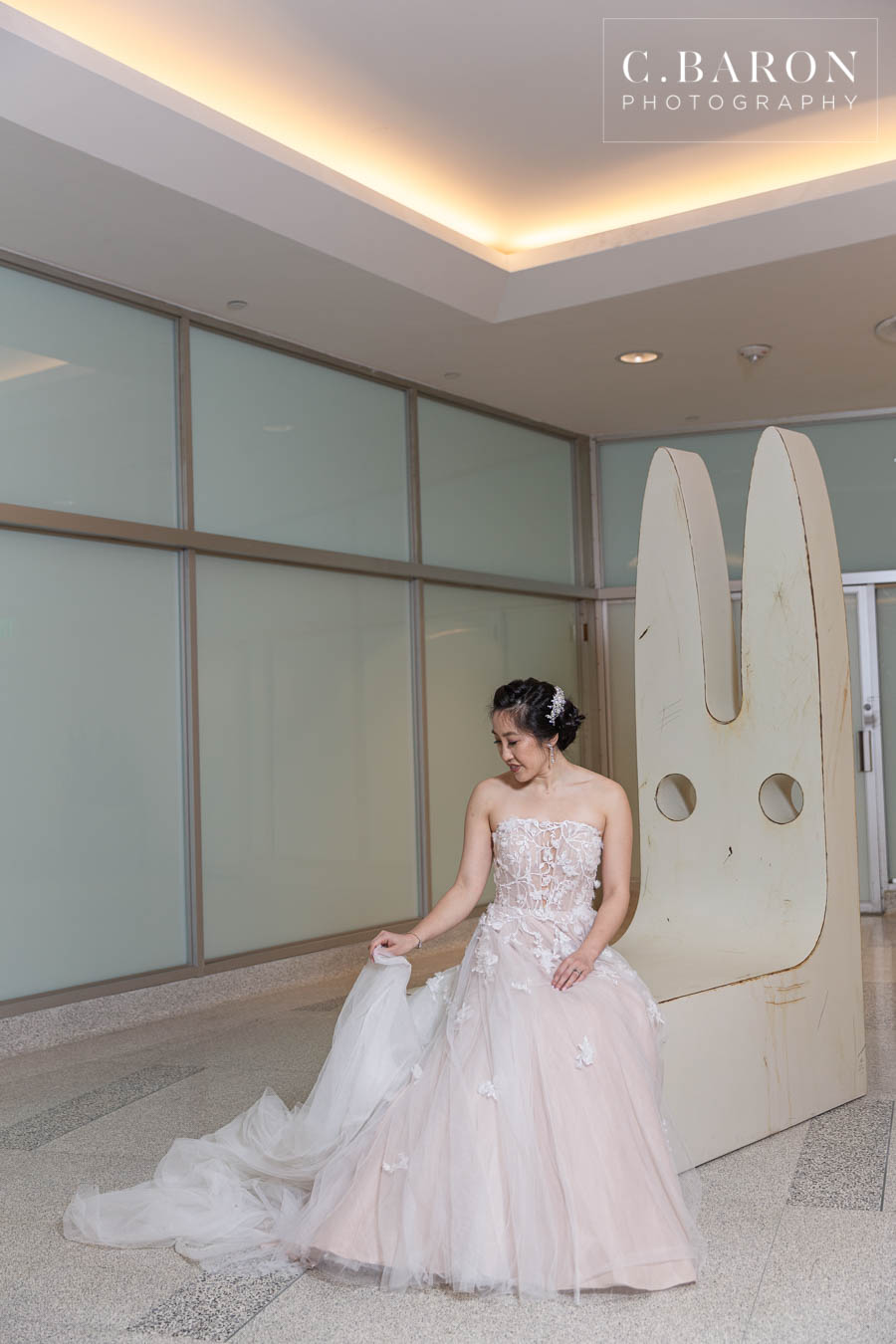 This lucky bride was the first to ever grace the new Texas Medical Center venue at The Westin. She looked stunning with an updo and embroidered gown from BHDLN.