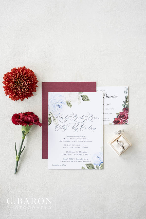 Kassidy and Colby had such a beautiful wedding with dark Fall colors, it was perfect for this elegant white venue near Houston, Texas. We wish a big congratulations to the happy couple!